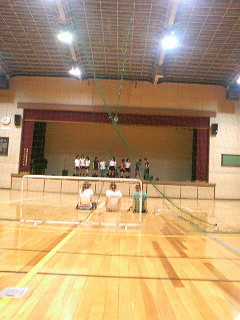 これは体育館にて練習中の風景です。しかし俺が気になるのは手前(見える?)の緑色のネットです。なんだか曲線がこんな風に交わってるのを見ると・・・・・・・・